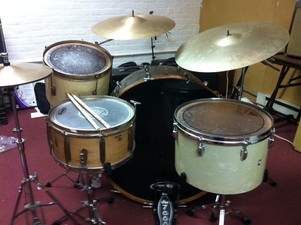 70's 16" Slingerland concert tom. Man...I want this thing to sound much better than it does right now but still fun and at $25...who can ***** about it? :Santa: