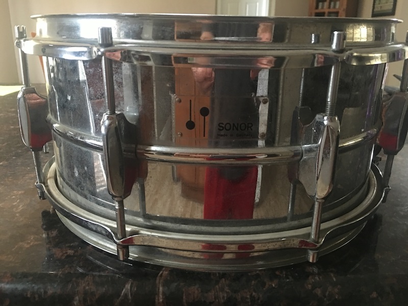 I love that other than the messed up strainer it appears all original. Even the heads and Sonor Snare wires look original to the drum.