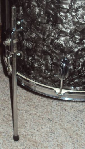 Here is a closer look at the tension rod and rail mount. I also thought the floor tom mount and leg were a little odd. May be pretty common but struck me as a bit different than what I have seen.
