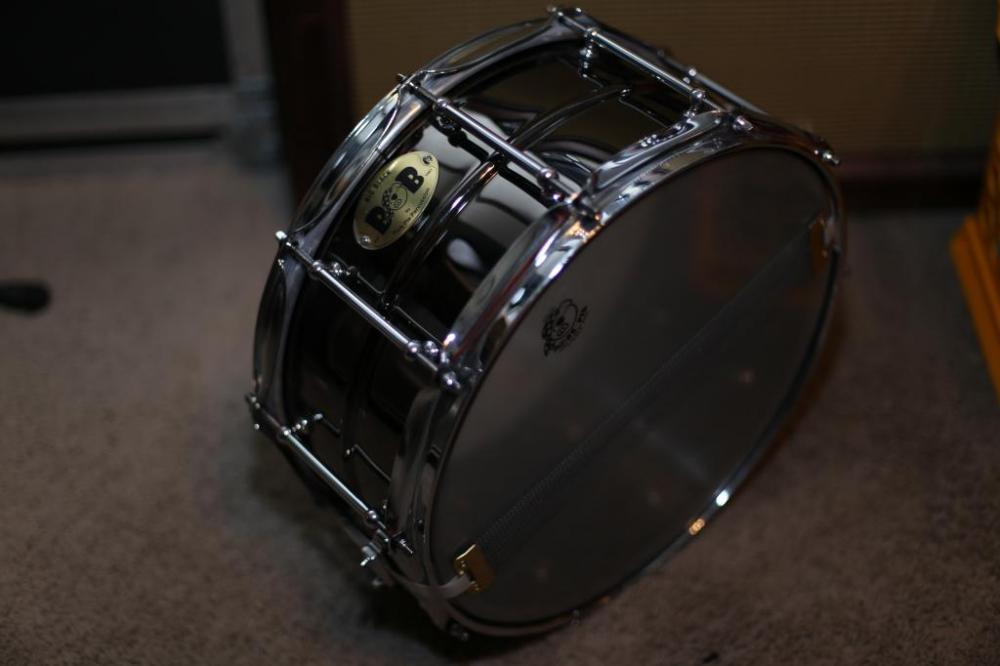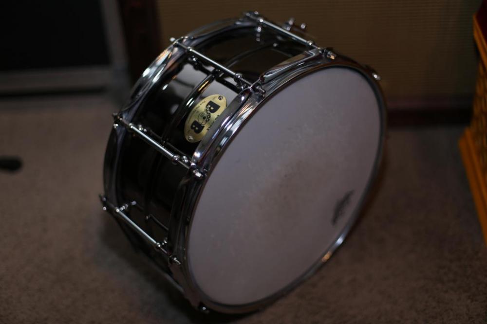 The Pork Pie Big Black Brass is a 14 x 6.5" nickel over brass snare, including 10 tube lugs with a Remo Ambassador batter and the original Pork Pie branded Remo reso head. *I used to own a Ludwig Black Beauty and Black Magic and sold both in favor of this. *While it wasn't quite as good sounding as the Black Beauty, the huge price difference certainly didn't reflect a huge difference in tone. *Wonderful sounding drum with plenty of warmth and that brass sound we all know and love.