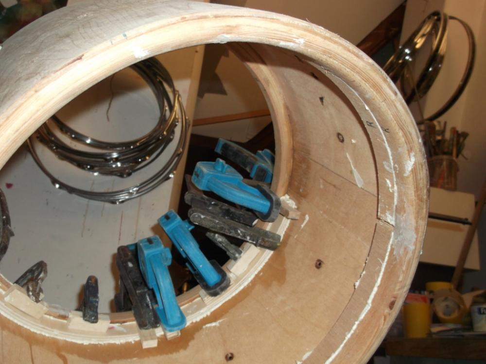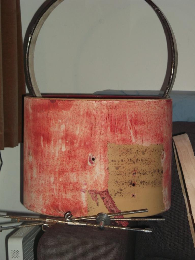 This week I started a new project. It's a small commission. On internet market I bought 3 marching drum with wooden hoops. I'm taking of paint/wrap, sand them, re-cut bearing-edges to make the drum louder. It is is going to be a mini-kit for small venues/light gigs. The shells will be stained dark wood and the hoops will be all natural. Sizes are 12 inch pre-int (tom), 14 inch (floortom), 16 inch bass. See pics.