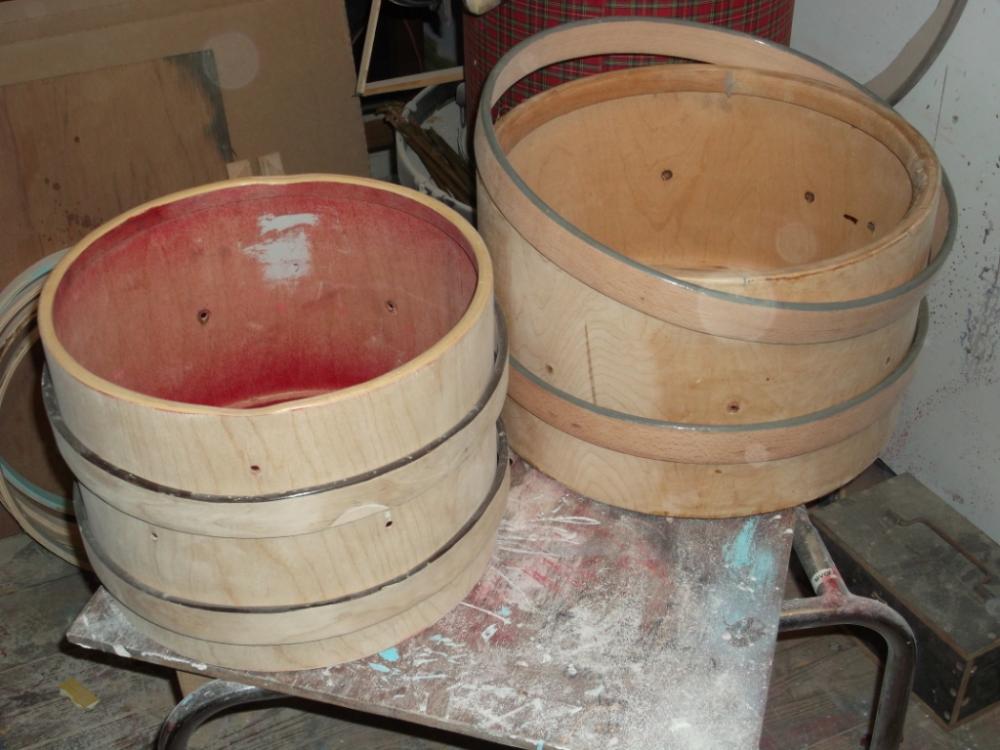 The 14 and 16 inch drums have all-ready arrived. They both appeared to have very thin maple shells, a pleasant surprise.