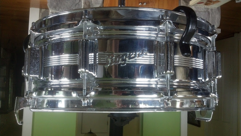 SOLD Ludwig 402 14 x 6 1/2 Supraphonic "Bonham" snare drum No. 2020625, round blue/olive badge; $450 SHIPPED in lower 48
