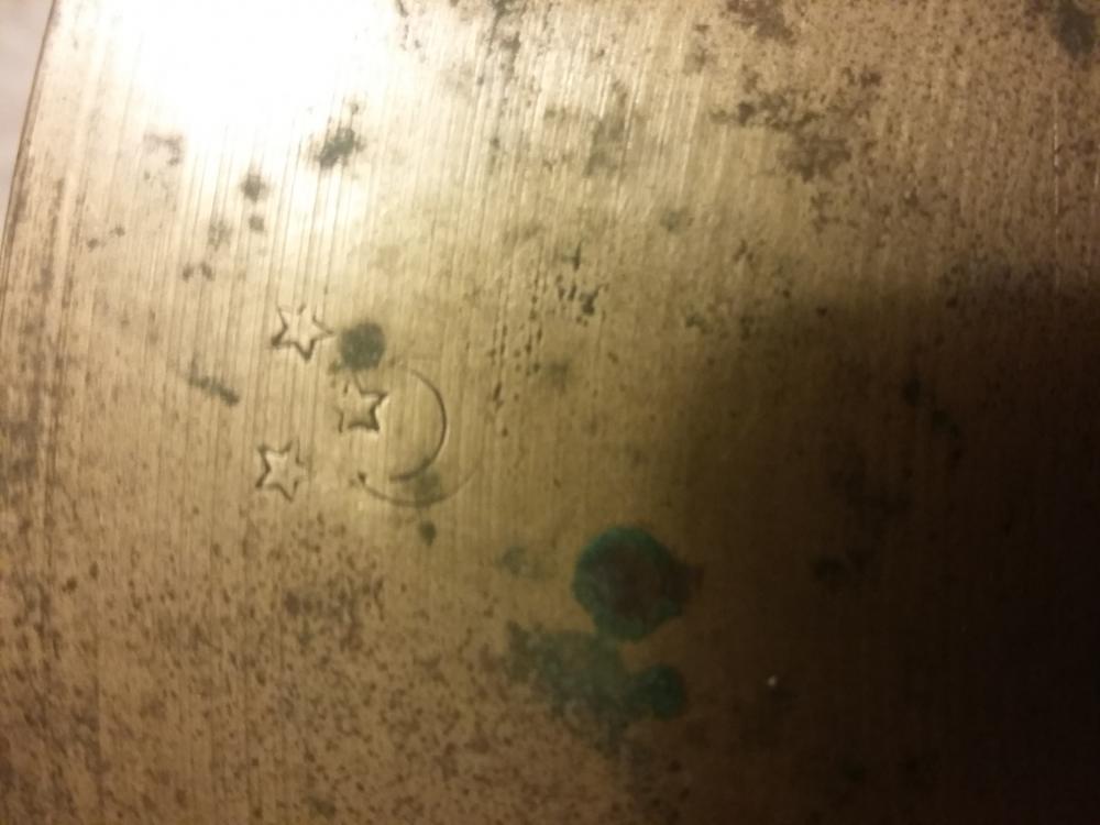 Hi, I have this old, crusty looking 11" cymbal with a crescent moon and three stars stamp that I'm not sure if I've seen before. Here's a photo of the stamp. Any information about what this could be would be nice.