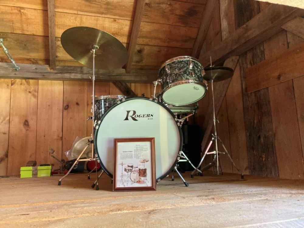 Your barn makes me homesick - I grew up in upstate NY. Some of my early gigs were at barn dance place. About 5 years ago I reconnected with an old bandmate. He sent me these pics that I had forgotten about. Only pics I have of my first kit. A 26" Ludwig BD with wooden lug snare and ST. I think the FT was an old marcher - the details are all fuzzy.