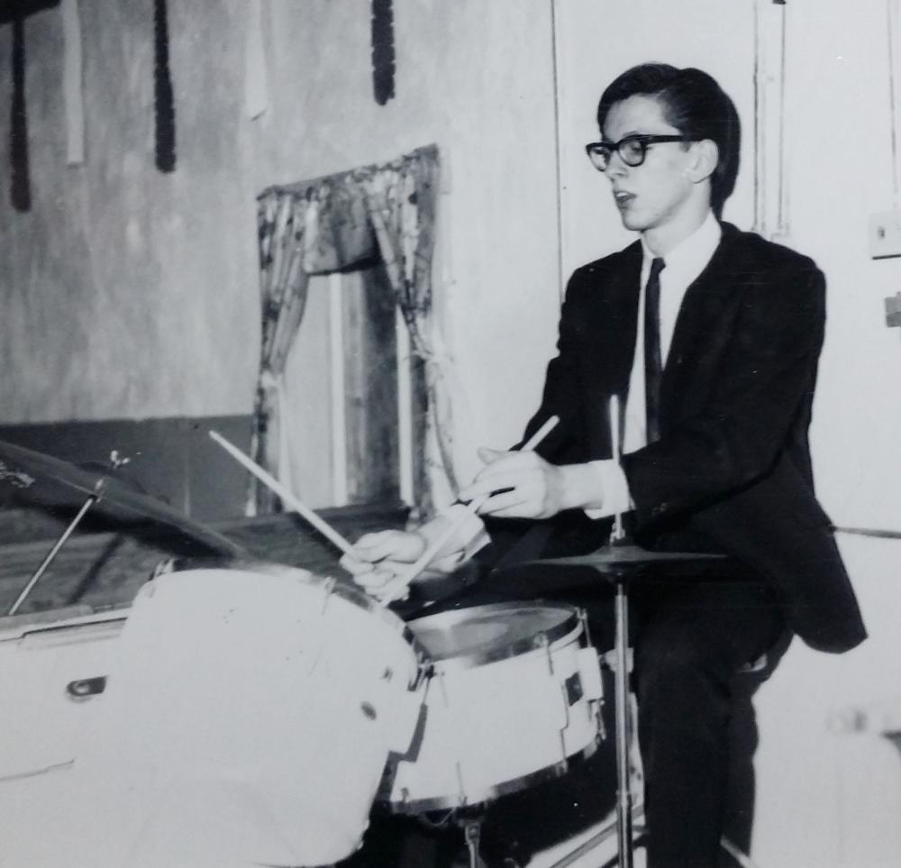 Mark and grantroThanks for your comments on the pics !Yes those were the days when I dreamed of fame fortune and lots of girlfriends ! lolI sold that old white lacquer kit when I bought my new Ludwig Burgundy sparkle kit in early 67 which I still have. Where did all those years go ?Doug