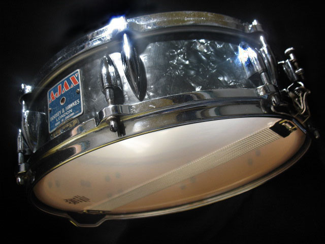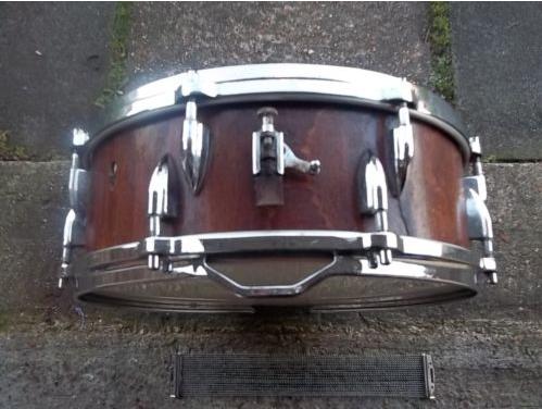 However i am struggling to identify the age/model of the snare it has the uncommon 16 offset lug arrangement of the earlier Ajax models (57-60) but the more modern badge used 60-67. Included in the pictures is one of a snare i found on the internet which (excluding the wrap and badge) looks very similar but is 14/4.5 whereas mine is 14/5.5.