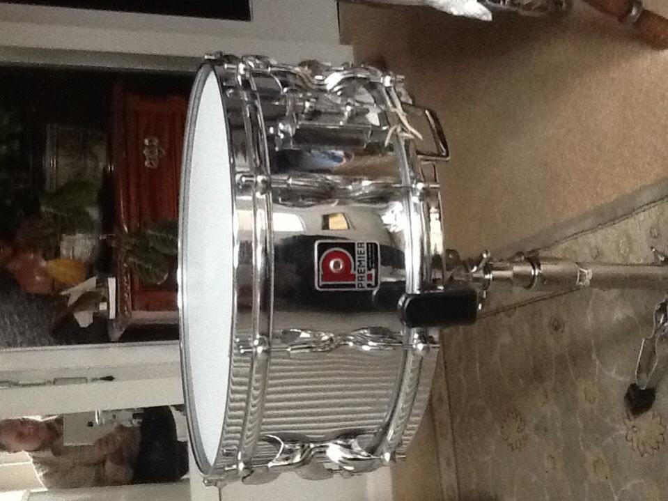 This snare is for sale locally and there's only one picture of it (and upside down, nonetheless). I don't know much about Premier metal snares, but the badge looks like the older one from the '60s and the rods look slotted when I look closely. Can anyone tell me by the lugs, strainer, hoops and what little there is in the photo if this is steel, aluminum or COB? Most cheaper 70s-80s Premier snares I see like this are steel, but I figured the older ones may be something else.