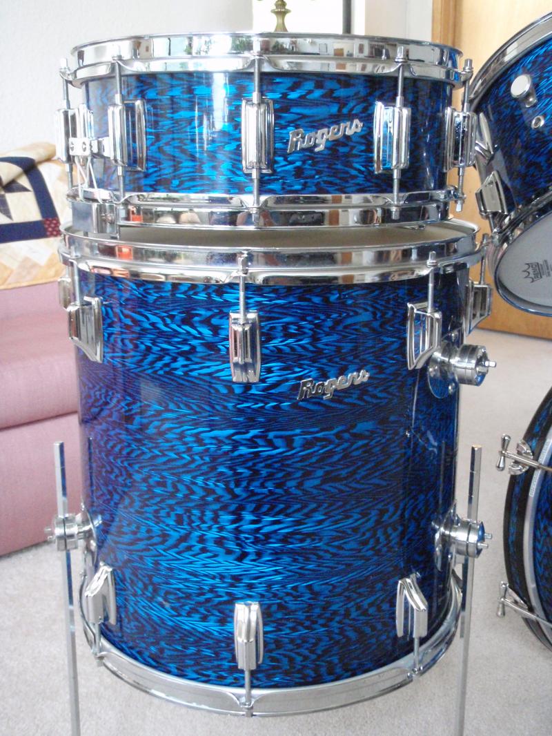 Dayton 20-12-12-16-Dynasonic Top Hat model with uncracked or blemished Blue Onyx wrap. Minimal cleaned needed. Had to reglue the wrap on the bass rims with a 6" piece missing. On the back bottom rim so no one knows. Couple of tension rods needed.