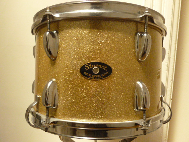 The wood glue dries hard to prevent lifting all over the place, it probably doesn't grab the plastic but certainly grabs the millions of sparkles glued to it. Contact cement was too rubbery for the relatively pliant Dura-lar....this I discovered on the bass drum! Should have started with the smaller tom shell...