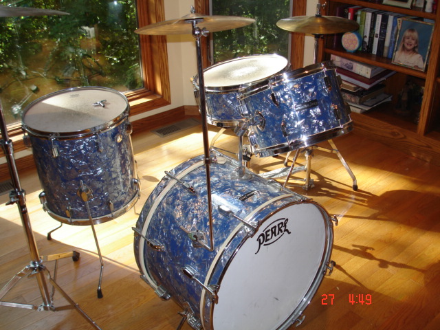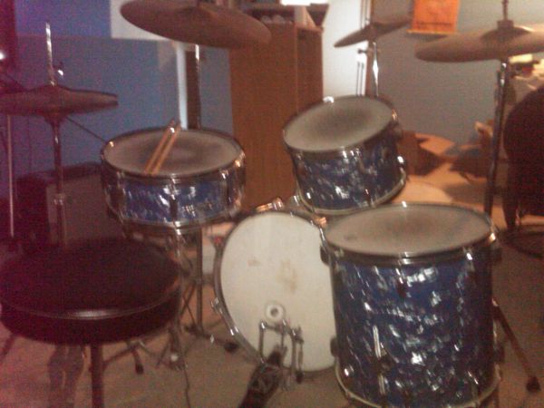 Well , I ended up buying the drums. The hihat and ride cymbal were the cheep mit ones but the zildjian was a nice one. The best part is the drums. The seller thinks they are from the 90's but I dont think so. I think they are late 60's, early 70's by the hardware. They are near mint condition, the seller got them from his Grandfather a few years ago. Grandpa played for enjoyment so never gigged them. They must have been a nice cool dark room for a long time. There is no rust at all, tiny bit of pitting and the waraps are like new. I feel like I did good for 300.00. So am I right, are these drums 60/70 era? JC