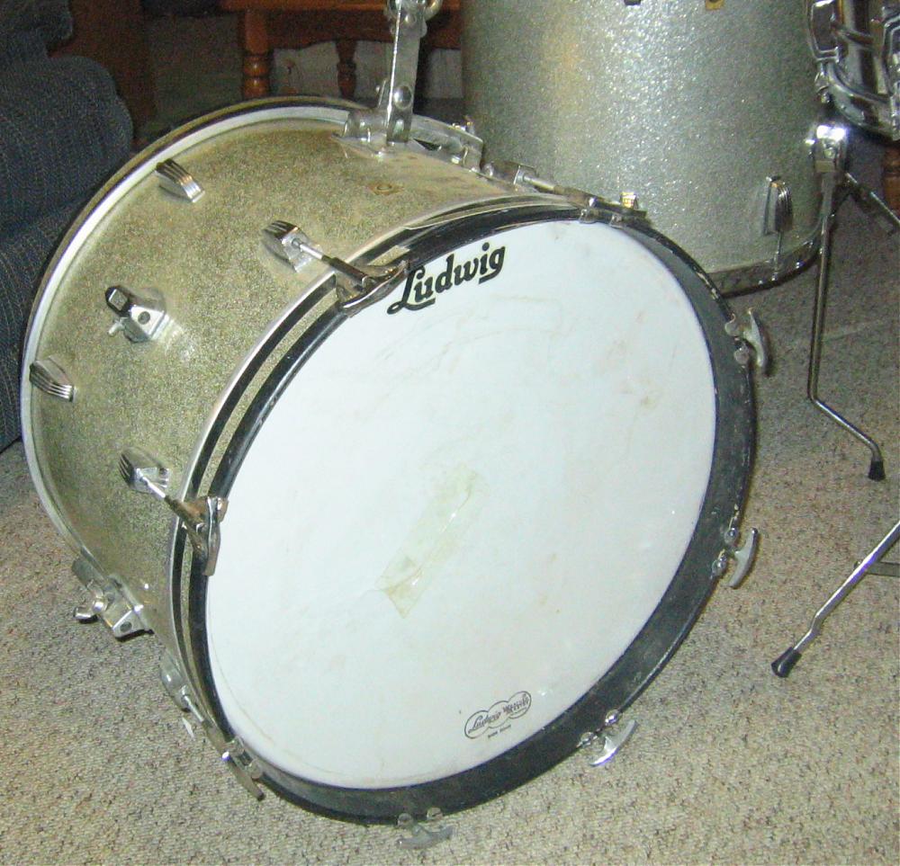 I had been looking for a Ludwig silver sparkle in a 20" size to go with some toms I have. I figured I would have to settle on a Club Date, as they are more common in that size. This drum came along as a BIN, and I pulled the trigger despite the lousy pictures.