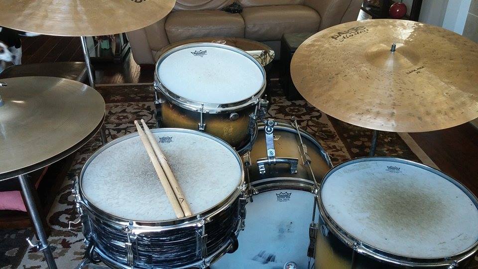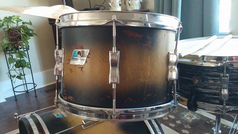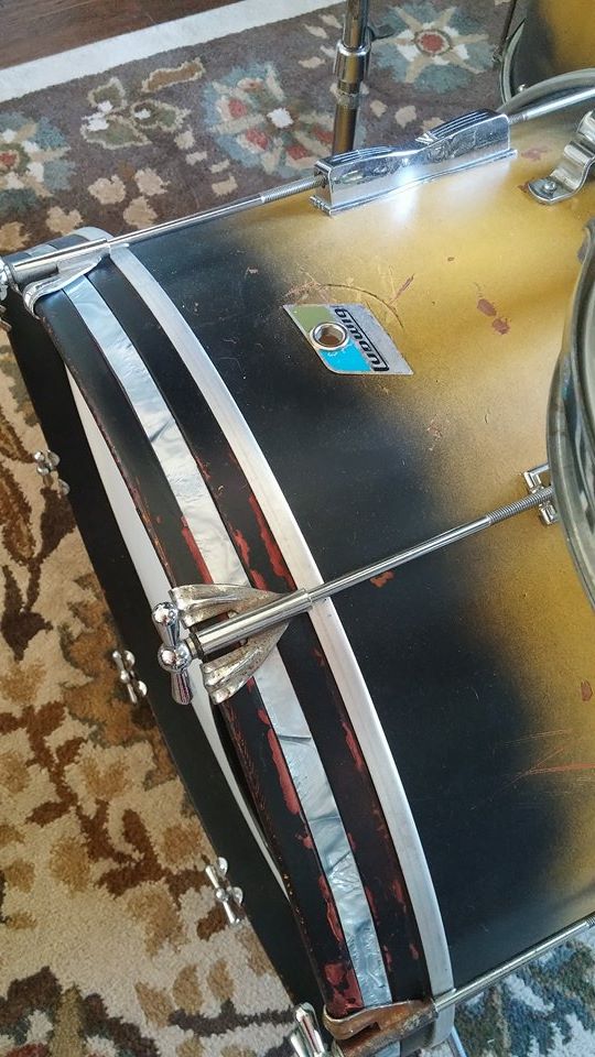 I have a set of 12x8 14x13 20x14 clubdates. I refinished (resprayed the black to gold to black duco) and reliced the kit. the 12 and 20 are mahogany poplar maple shells. and the floor tom is 6 ply maple (an old Ludwig marching shell that was undrilled). the original 14 was too far damaged to use and so I used this shell. the kit is made to look old but drums are all playable and sound great. some small damage where kick spures are. also the front hoop is a little out of round. I replaced the inlays with 70's era sky blue pearl wrap. all drums date 1970 except the new 14. this is my favorite kit to gig with because if it gets a little scratched it adds to the character.