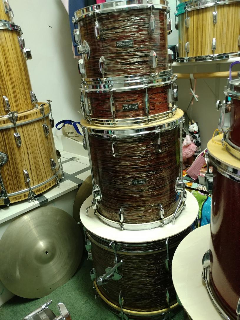 #3 is a nice Pearl President set in original red oyster wrap. Sizes are 13,16,22 with a 5.5x14 10 lug matching snare drum. The shells are the Phenolic structure. Some holes in the bass drum. [COLOR="Red"]700.00[/COLOR]