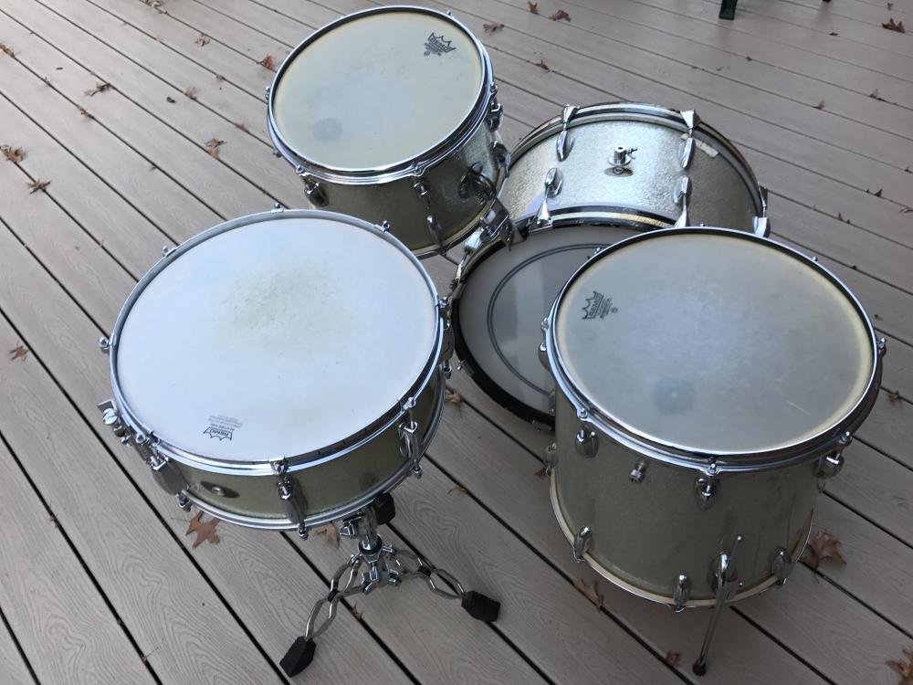 Slingerland pre-serial Niles badge ('61-'62) silver sparkle set: