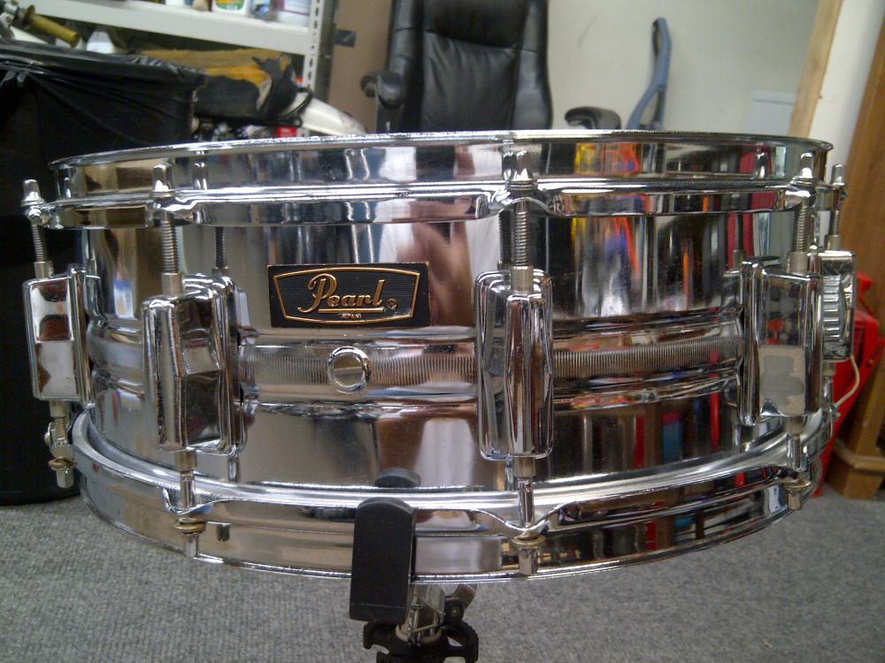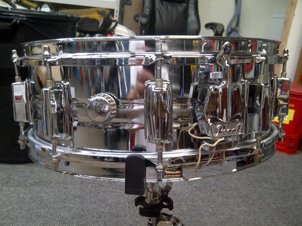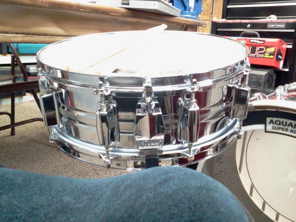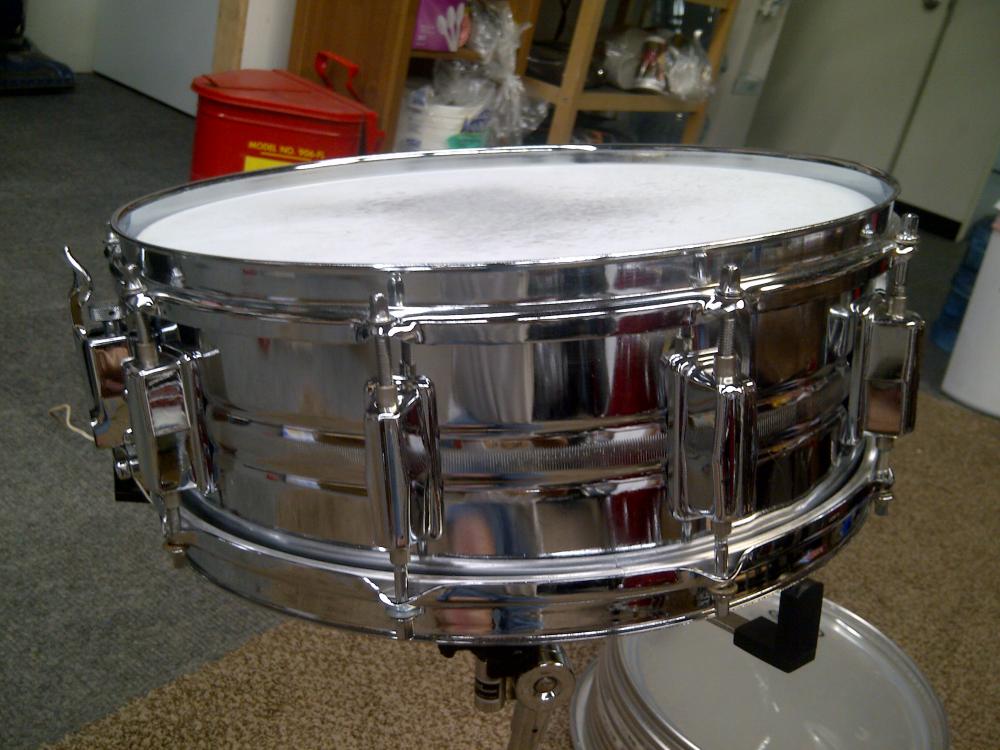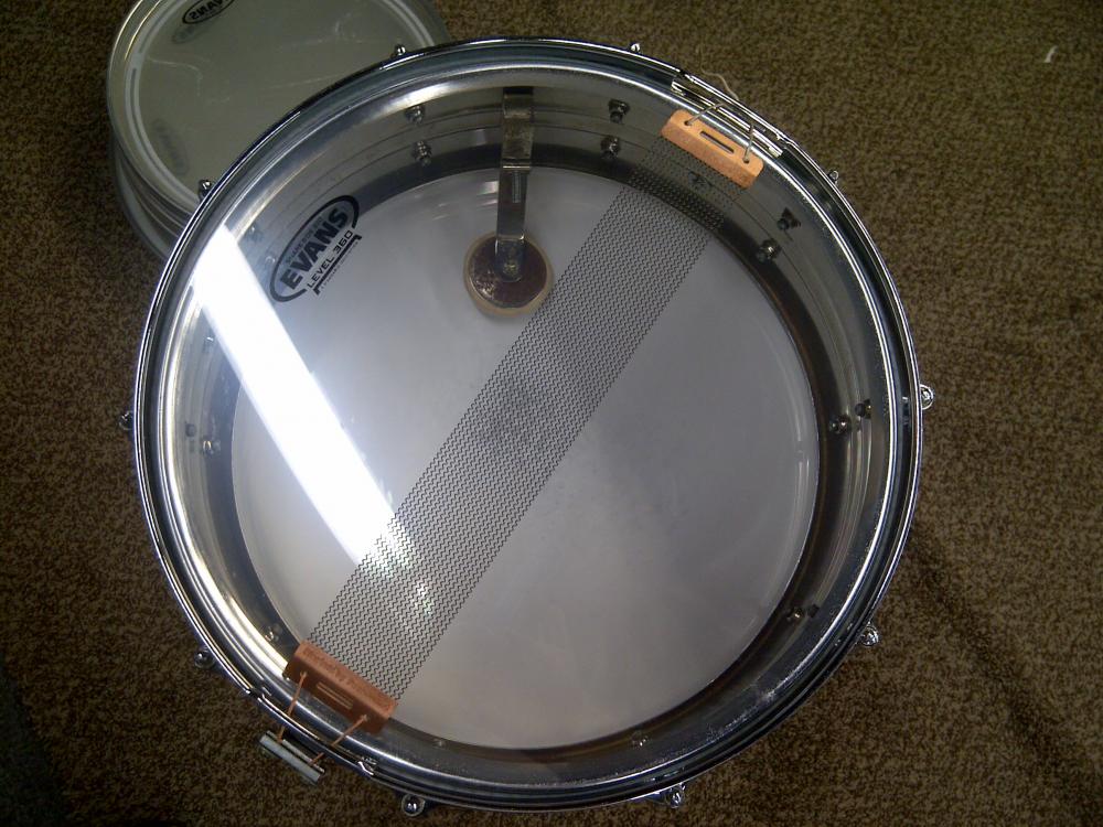 This has been restored. New Remo Amb bottom, New generic 10 mil coated top. Puresound wires. 10-lug.