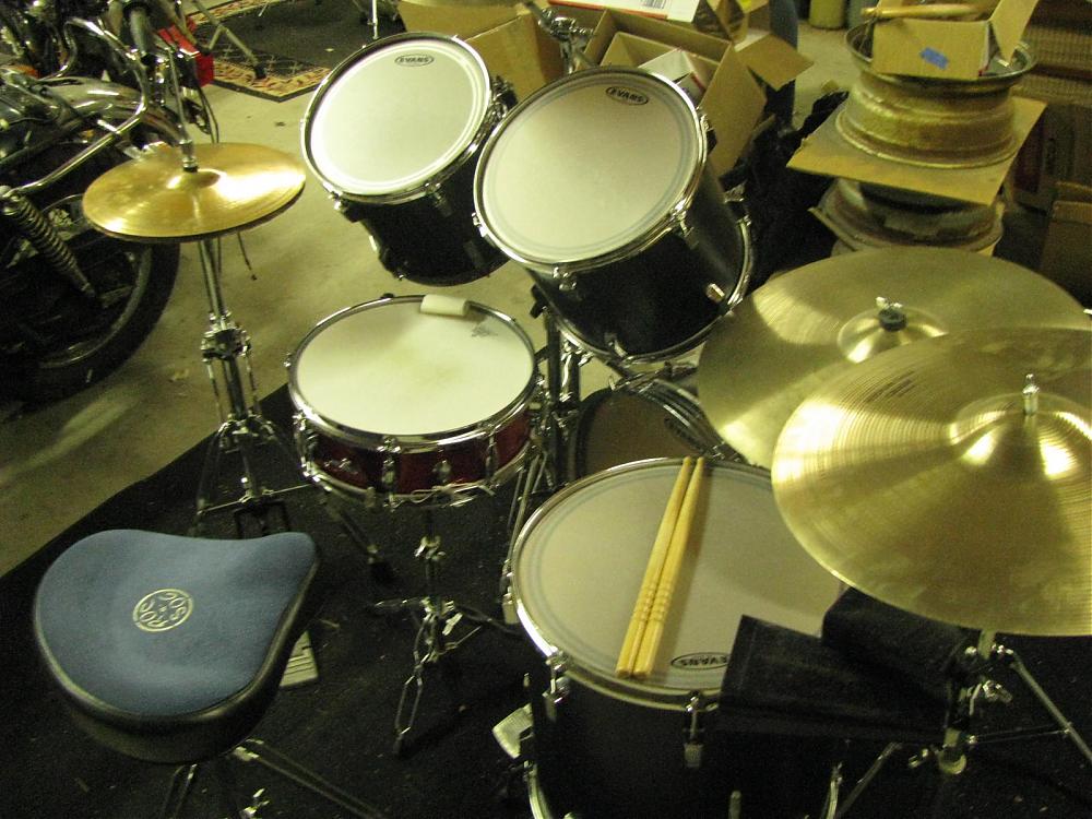 How do you keep yourself occupied during the cold winter months?Here are the results of my $75 purchase before Thanksgiving.It is an early Tama Rockstar(seperate lugs)refinished in a pseudo black panther color scheme-the original finish was gouged beyond refinishing.Included in the photos is the final piece of the set,finished last Friday,and the reason for the purchase of the whole set.An Oaklawn 5x14 Camco snare.Very different sound from snares I own now,can really be described as 60's sounding.