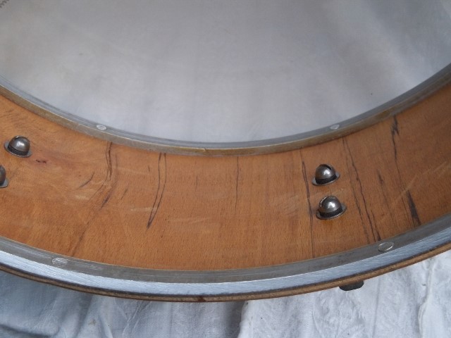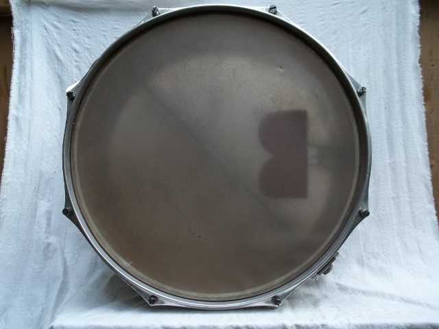 I have been around European drums a lot and this one stumps me---in more ways than one----even the snare head stumps me. Firstly, the shift from the use of non-standardized metric sizing , took place on an individual company basis ----Trixon was the last to convert ( 1963-4) but some companies, surprisingly the East Germans were as early as 1955/56. This drum is, a now conventional 14" x 5 1/2" drum with a snare head , branded Buffalo, which was what the seller advertised it as. I have never seen a Buffalo head but the style of the heads is of the older , integrated mud mix version( in order to look like calf), rather than coated. The early German heads--RKB(Tromsa) were like this but the aluminum hoop ,of this head is not Tromsa like. It seems to have been made by another company. Perhaps these are not German heads.