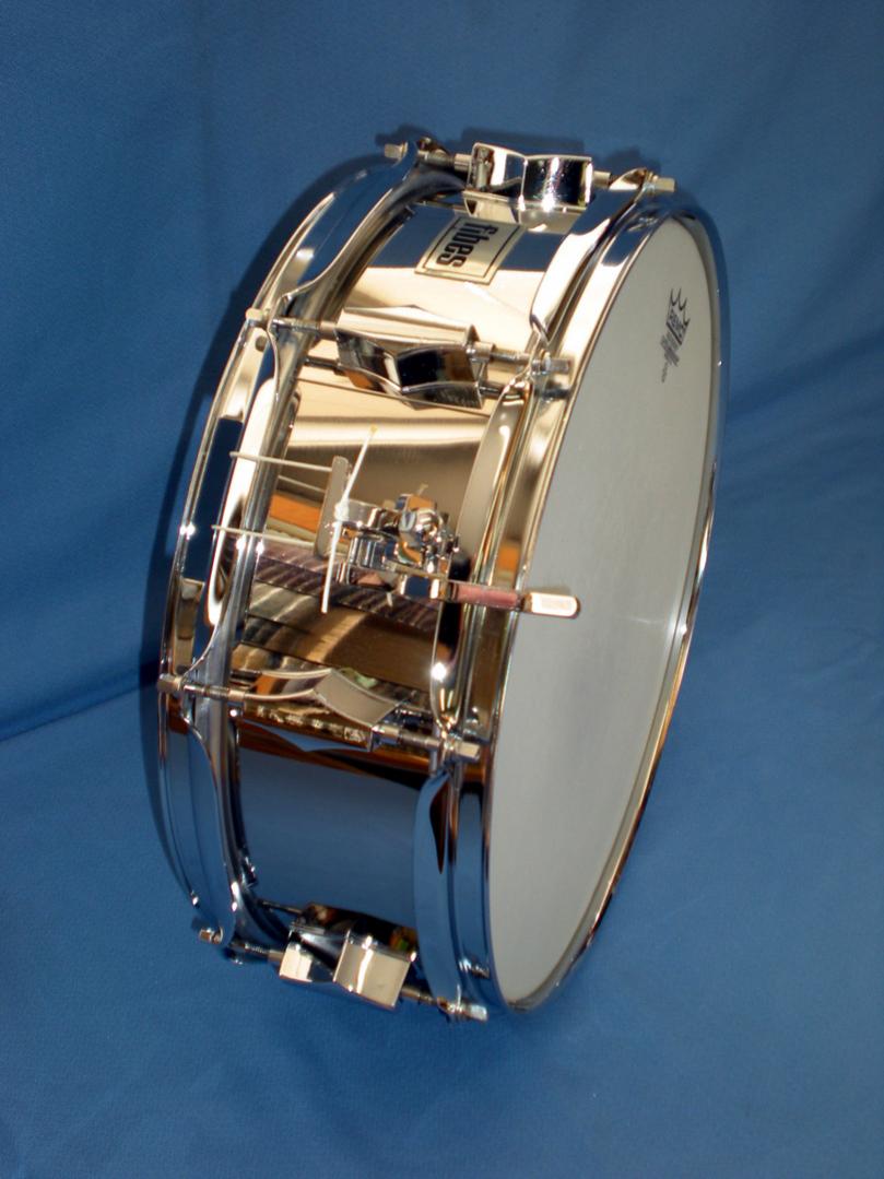 Again... personal opinion/choice! I'm sure you have a range that you like, but remember... this is a fiberglass shell with chrome wrap, thus you will "want" the drum to be at least in a medium area on the batter, if not slightly higher. That is where you will get the sensitivity and articulation that these drums are renowned for! The snare/reso side must also be tight as you want the air column to excite the wires quickly without heavy hitting. This is the nature of the fiberglass shell. It IS by nature a "high endy" sounding/functioning type snare drum. The MAIN reason Buddy Rich LOVED the Fibes SFT690/COF was due to exactly that. His quote was something like: With this snare drum I can reach the last seat in the house, way in the back! He was right! Here are a couple pics of my 1966/67 and 1973 Fibes SFT690/COF snare drums... both Buddy Rich models! Hope this was of some help.