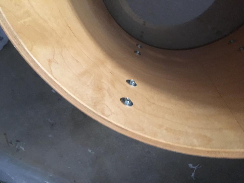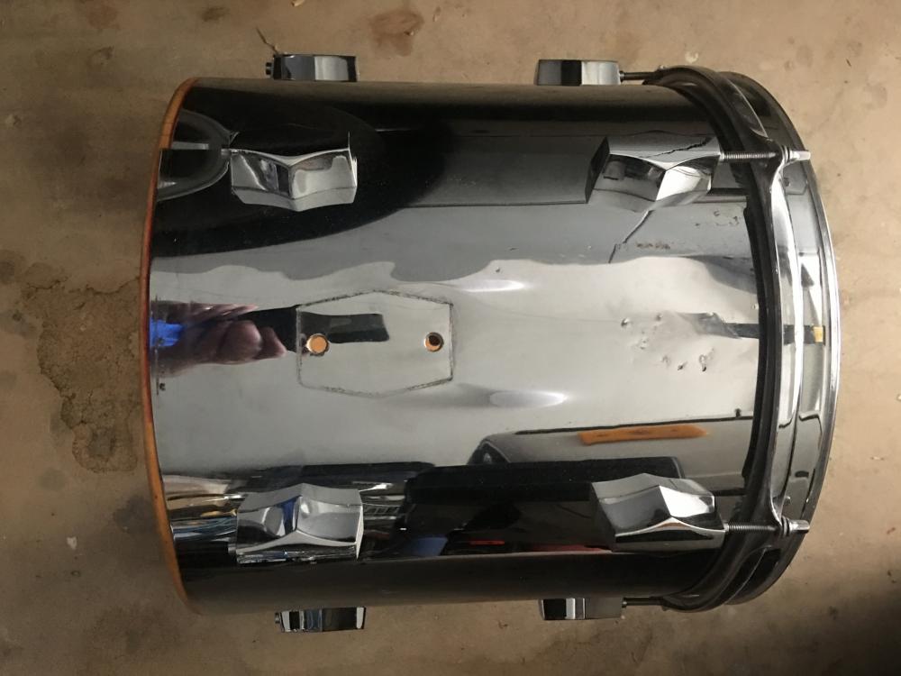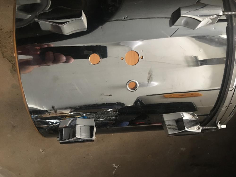 These came in a lot of old drums and parts I bought today. Lugs look like Fibes and the interior of the shell is a nice looking maple. Unfortunately they added extra holes into each drum for a mic'ing system and I am not sure if the missing tom mount (looks Tama) is the original whole spacing but I do not see any other holes for tom mounts on any of the drums. I have 3 of these things in power tom sizes 15x13, 13x12 and 14 x13. Any insight would be great!