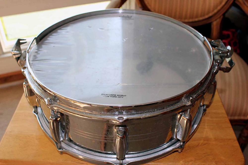 Now that it is unwrapped and ready for restoring, here are a couple of "before" pictures. Certainly not my usual collectable snare, but because there aren't many of these, I am looking forward to restoring this and playing it.