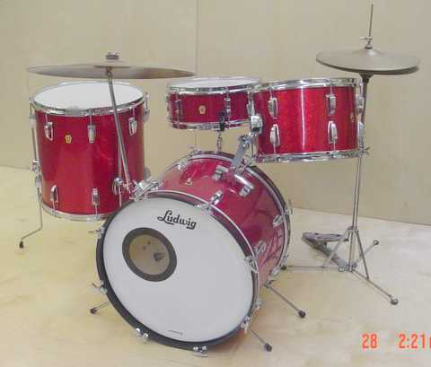 Nice punchy 20" bass, with full-sized toms. This was a more common configuration with Rogers & Gretsch than with Ludwig, altho' there were plenty of kits with these sizes over the years.