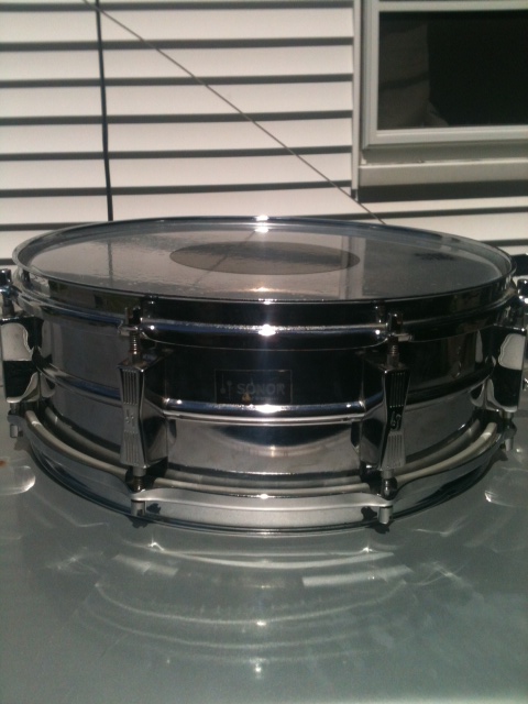 downside is it has a yamaha strainer instead of the original,and no muffler ,and only a sonor sticker on it no badge. asking 125.00 heavy duty shell original lugs slotted tention rods .