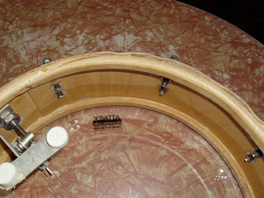 have had this a while now. just making some room. this is a complete mid 60's sonor 14" 8 lug sonor snare drum. you can play it as is or use it for parts. in one area, the top of the shell is warped. the re-ring is all there and appears to be in round. head spins easily on the shell. it sounds fine. it came this way to me. with the batter head on, it cannot be seen.