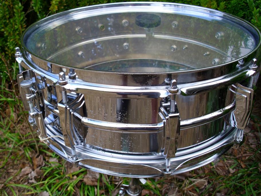This is a March 8 1968 date stamp 5x14 10 lug Ludwig Supraphonic. Serial number 587413. This drum is completely original with the exception of heads. Has a new clear batter head and a fresh Evans hazy 300 on the snare side. This drum has plenty of shine and lustre, but has a case of the Ludwig freckles. The drum has no damage,dings or scratches, but does have some pitting on the shell. One pic shows the worst panel. The hardware is in nice shape overall. There is one spot of corrosion on the batter hoop and also a place on one lug. P83 strainer is nice and smooth. Has the Ludwig script logo snare butt. Has the original Ludwig script chrome tip 18 Strand wires and original snare cords. Large round knob muffler works great. All matching tension rods and brass washers present. Drum sounds fantastic as it should. It has been completely detailed and needs nothing. Please feel free to pm me here or email to [email]mikelayton@bellsouth.net[/email] if you have any questions. Thanks for checking it out!