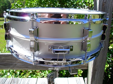 this is the nicest acrolite that i have run across.I wish they were all like this. here is a Ludwig 5x14 blue olive pointy badge acrolite. serial number is 2205371, no date stamp inside. this was found in all original condition including heads. the snare side head had a slight tear.so, i installed brand new Ludwig heads top and bottom. has the original 12 strand 2517124 wires with the original cords in perfect condition. has a 2 hole p85, round knob muffler and block logo snare butt. the anodized finish on the shell and all of the hardware is like new. i see one mark on the finish below the snare butt that is not even deep enough to call a scratch. there is one spot on the top of the batter hoop that is not perfect. the drum looks and sounds amazing. if you've been looking for a super nice Ludwig metal drum, then this is the one for you. it has been completely detailed,tuned and is ready to go! if you have any questions, please pm me here or email to [email]mikelayton@bellsouth.net[/email] .