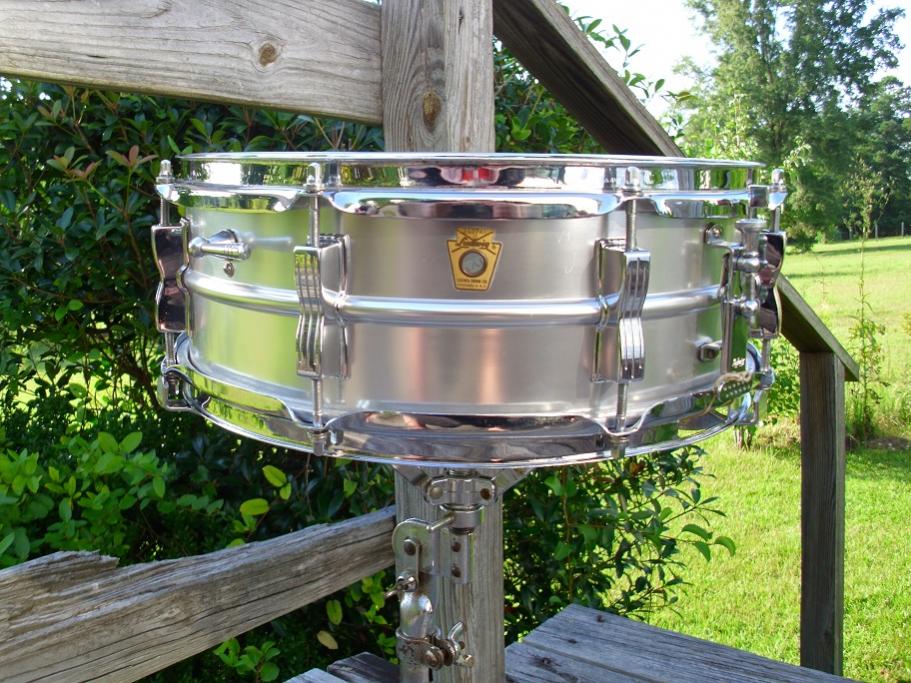 These are by far my favorite snare drums. I love everything about them. This one is "mine" from my personal stuff. Really need some Christmas funds, so it must go. This is a beautiful 1965 Ludwig 5x14 8 lug Acrolite. Serial number is 212761.This drum is completely original including heads, snare wires and cords. Has the original Ludwig orchestra batter head and Ludwig snare side head. Has the P83 throwoff and resin tip 2517124 20 strand original snare wires and script logo snare butt. White felt baseball bat muffler and chrome over steel hoops are all accurate for this period. It's in great condition and only has a few surface scratches here and there. There is a previous owner's(?) name on the inside with a piece of tape. Drum has been put away for a while and I will give it the usual fresh detail before it heads out to you. Please pm me here or email to [email]mikelayton@bellsouth.net[/email] if you have any questions. Paypal only on this one please. I will get it out quickly. Thank you.