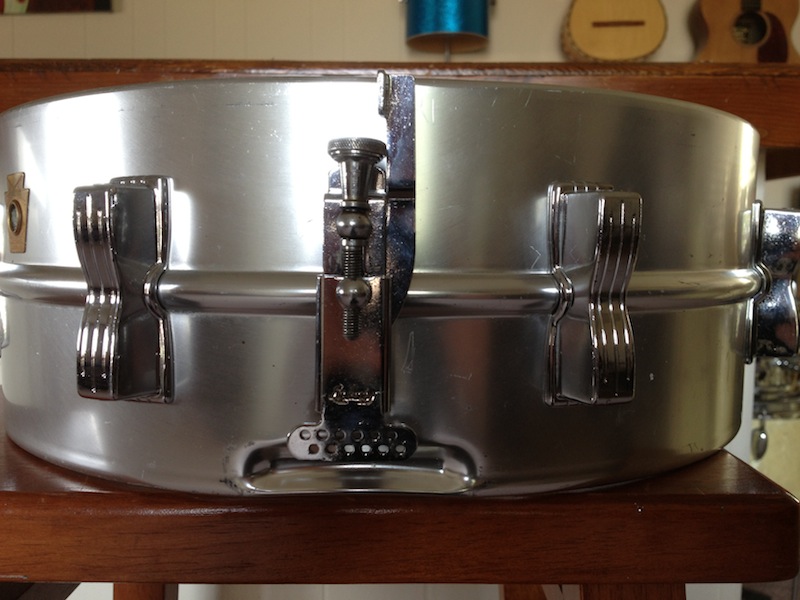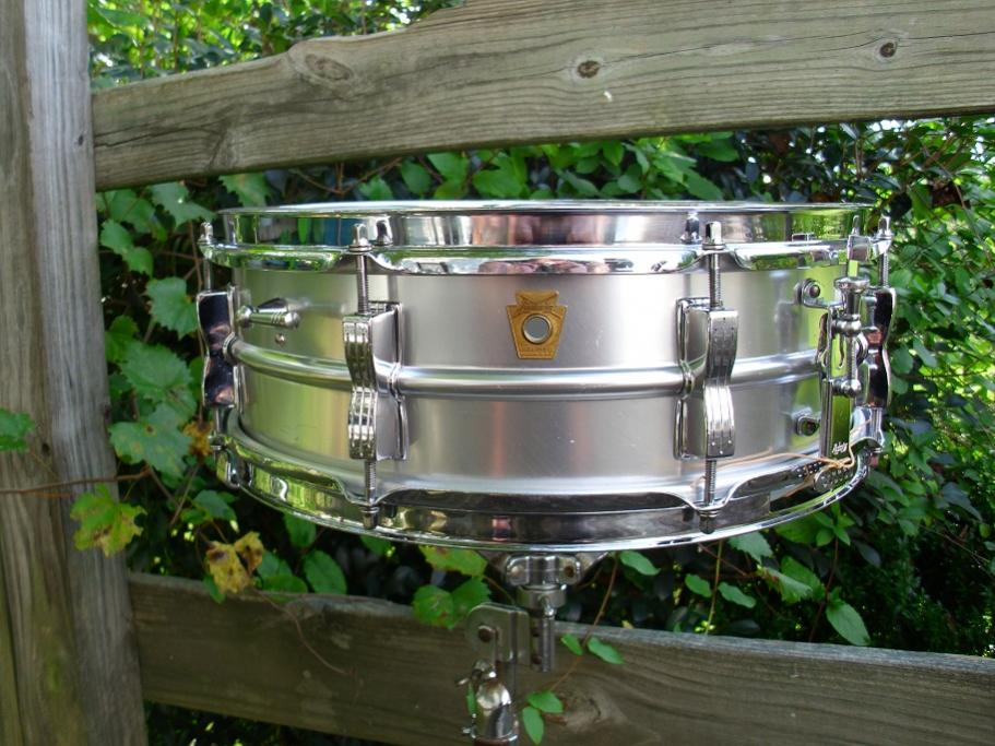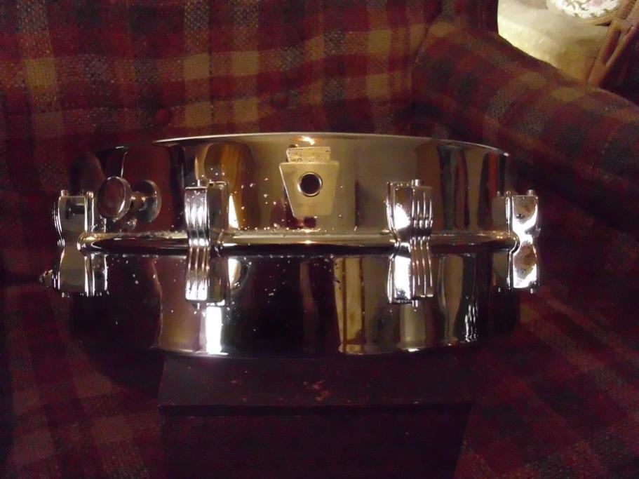 First item is a mid 80's 5x14 Ludwig supra project. All this needs is hoops and tension rods. This has a very uncommon Large keystone badge with Chicago USA and no serial numbers. One of the last supras to come out of Chicago before the move to Monroe. The ten bowtie lugs are original. Has p85 strainer, p32 snare butt and large round knob muffler. Shell is good and straight. This was not an abused drum, just got a case of the Ludwig freckles. Would be a perfect candidate for an aluminum polish job or just play as it. Sounded great when I had it together.