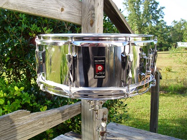 ive had this one awhile and decided to clean it up and cut it loose. this is an 8 lug 5.5 x14 steel shell Olympic by Premier snare. I don't know much about these other than they sound good and don't sell for much! I have completely disassembled,polished and lubed everything. the hardware is in beautiful condition. the shell has no damage,dents or scrapes and polished up nicely. it does have some finish blemishes on the shell itself that you can see in the pics. strainer and muffler work perfectly. I installed new snare cords on the 16 strand new era snare wires. the hoops are in great condition and all tension rods match. has an older remo ambassador snare side head. it appears to have a few pinholes. it sounds just fine as i didn't have a better one around. the batter head is a used everplay head that has plenty of life left in it. this is a super clean,nice sounding solid snare drum. please pm me here or email to [email]mikelayton@bellsouth.net[/email] if you have any questions. thanks!