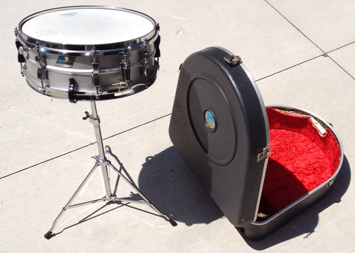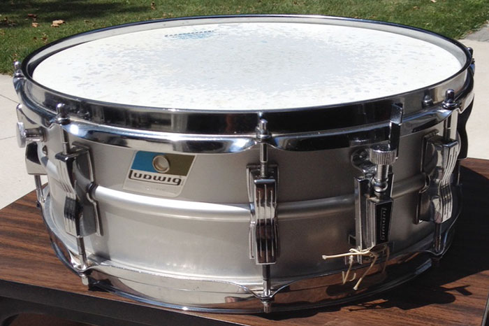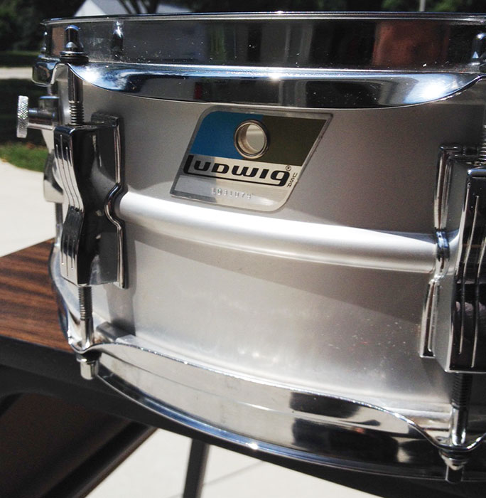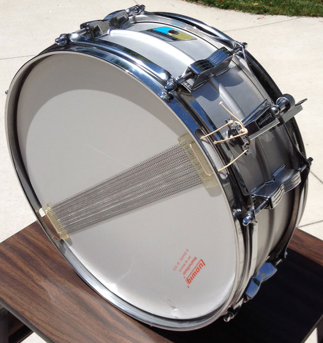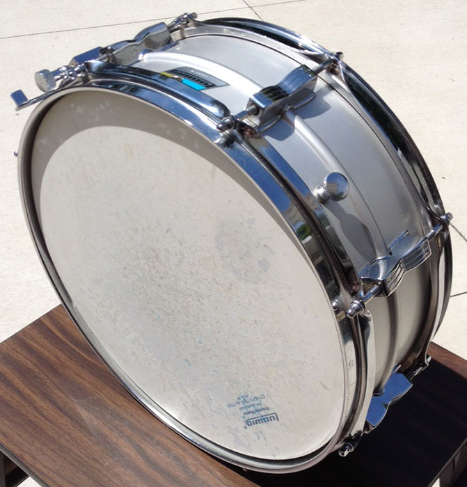 For sale is a Vintage 1976 Ludwig 5x14 Acrolite Snare in great condition. Everything appears to be original. Small pierce in the botton head. Shell is in round and features the standard 8 bowtie lugs. Chrome over steel hoops. Blue and Olive badge serial is 1031079. Includes original stand and hardshell case.