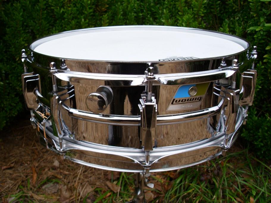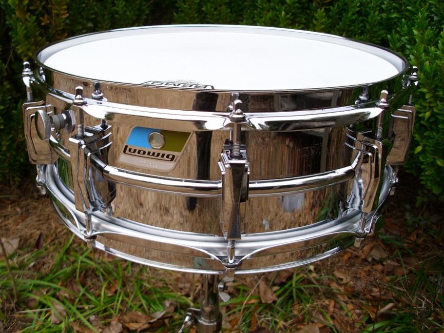 This beauty is a 5x14 10 lug Supraphonic. This is a very early Blue Olive badge Ludaloy model with serial number 770308, making it a very late 60's or very early 70's issue. As you can see from the pics, the drum looks very nice overall. The chrome plating has a beautiful sheen to it and is super clean. There is some mild pitting on the drum. Most of it is seen on the front of the drum. This drum was in excellent condition when I found it, but still got the usual complete disassembly/detail process. It has no dents,dings or damage. This drum is completely original with the exception of the heads/wires. All matching tension rods with brass washers present. Has fresh heads which are a Remo Coated Ambassador up top and a hazy Remo Ambassador snare side head. Drum has an added bonus with a set of 20 strand Canopus wires installed with Ludwig orange snare cord. The wires give the drum a wonderful sound. Has the original 12 hole blackface P85 that works effortlessly. This model has the large round knob muffler and the Ludwig block logo snare butt. It's been cleaned,tuned and is ready to go. Please pm me here or email to [email]mikelayton@bellsouth.net[/email] if you have any questions. My items are fully insured and will ship promptly. Thanks for looking!