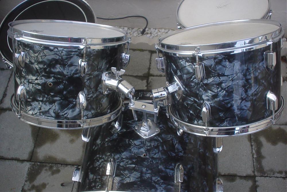 Up for sale Pearl Drum set 60's Vintage in good condition Black Diamond Pearl finish sizes 22,13,13,16,14in chrome snare not sure the snare is Pearl? The drums are for PICK UP in SF Bay area I have lots of more pictures if you want them just let me know. Please check out the other items I have listed. I prefer pick up in the Bay area I might be able to ship in the USA ONLY. for about $100 ground shipping and packing Thanks For looking email me [email]Jr6532@aol.com[/email]