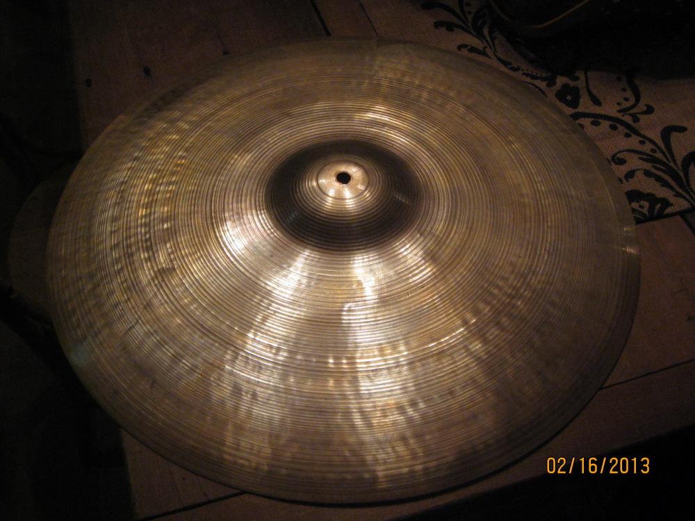 letting one of my babies go tonight! this is a very special, beautiful vintage avedis zildjian 22". its exact weight is a thin 2530 grams. it is very flexible and thinner at the edges. crashes like a dream. its a very lively cymbal. sounds almost glassy to me. doesn't take much much stick at all to get it talking to you. has a very nice wobble to it. very nice musical sounding bell. has just a tad of a keyhole going. no damage at all. I have never cleaned it in the year or so that ive owned it. only selling it for financial reasons. the stamp is 1 1/4" tall and has the three dots. I would assume this is a very early 60's cymbal as it has extensive top and bottom hammering giving it a very complex sound. a couple of the pics are the original sellers pics as they do a much better job of showing the cymbal. if it weren't for the stamp, I would think this was a 50's hollow block. sorry, but I do not have sound files available for you. please pm me here or email to [email]mikelayton@bellsouth.net[/email] if you have any questions. I ship quickly. thanks for looking.