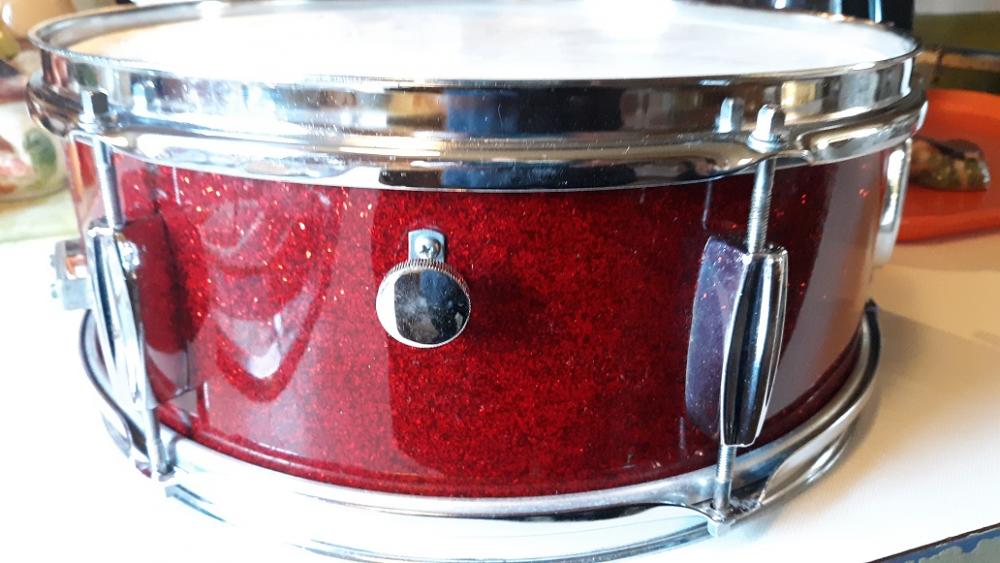 Nice and clean 60's MIJ 5x14 6 lug in Red Sparkle. Maybe a Pearl stencil? Surely someone knows. All original parts except for the heads. Strainer/tone control work smoothly. No issues. Add this to your Red Sparkle collection on the cheap! Sounds good! Can pm me here or email to [email]mikelayton@bellsouth.net[/email] . Thanks...Mike