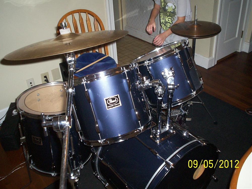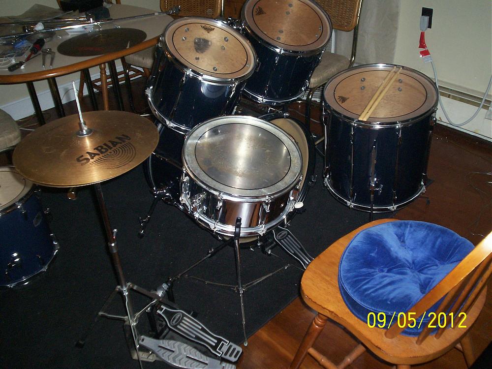 Anyway here are two pictures of the drums after a little cleaning. Excuse the drum seat but I and my grandson were chomping at the bit to hear them.I tuned them and I have to say they sound pretty good for a beginning kit but the snare really sucks. I am going to give him an acrolite snare to play.