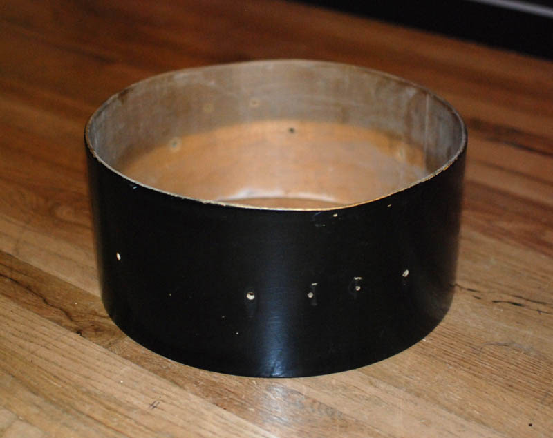 This is a 40's Catalina shell in black Duco paint with clear interior. It's 3 ply with round over edges, drilled for 8 single point lugs, a side-by-side 2 point throw off, and standard 2 point Gretsch buttplate. The drum came with the original round badge and perfect eyelet as well as 7 yellow plastic single point lugs.
