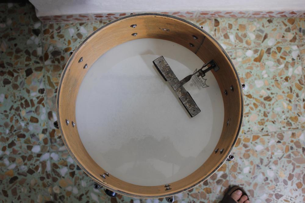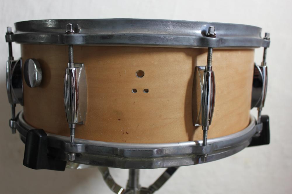 I have a project here that I won´t finish and needs a good home. It´s a 50´s Gretsch Broadkaster snare. 14"x5,5". 3 ply shell. Low profile die cast hoops. It needs the strainer and one point butt, the badge and a new finish, wrap, oiling or whatever. The interior is clear but was paint in black at some areas including the bearing edges. Now it´s all clean but remains smooth grey colorations. No extra holes in it. $220 shipped
