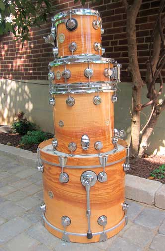 Drum Workshop (DW) Exotic Olive Ash Collectors Series 4 piece drum kit in MINT condition, (circ. 2004). Natural Olive Ash High Gloss Laquer over DW custom maple shells (not Keller). Limited wood and no longer available. This is not the current Olive Ash Burl offered today. This finish has a unique "light to dark" horizontal natural fade/figuring with vertical "curly/fiddleback" figuring. This kit is beautiful and sounds beautiful! Kit stayed temp and humidity controlled home studio drum room. If you are interested we can talk shipping that makes since. I have good pics, but this site doesn't support the amount and size. so I will send via email, if you are interested.