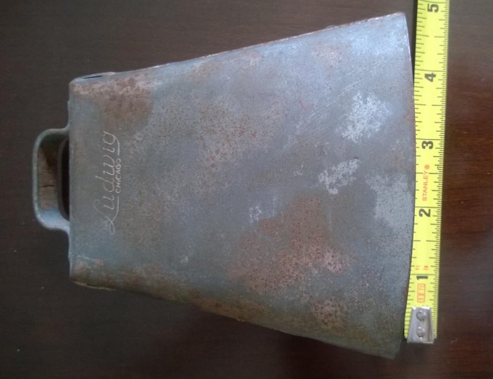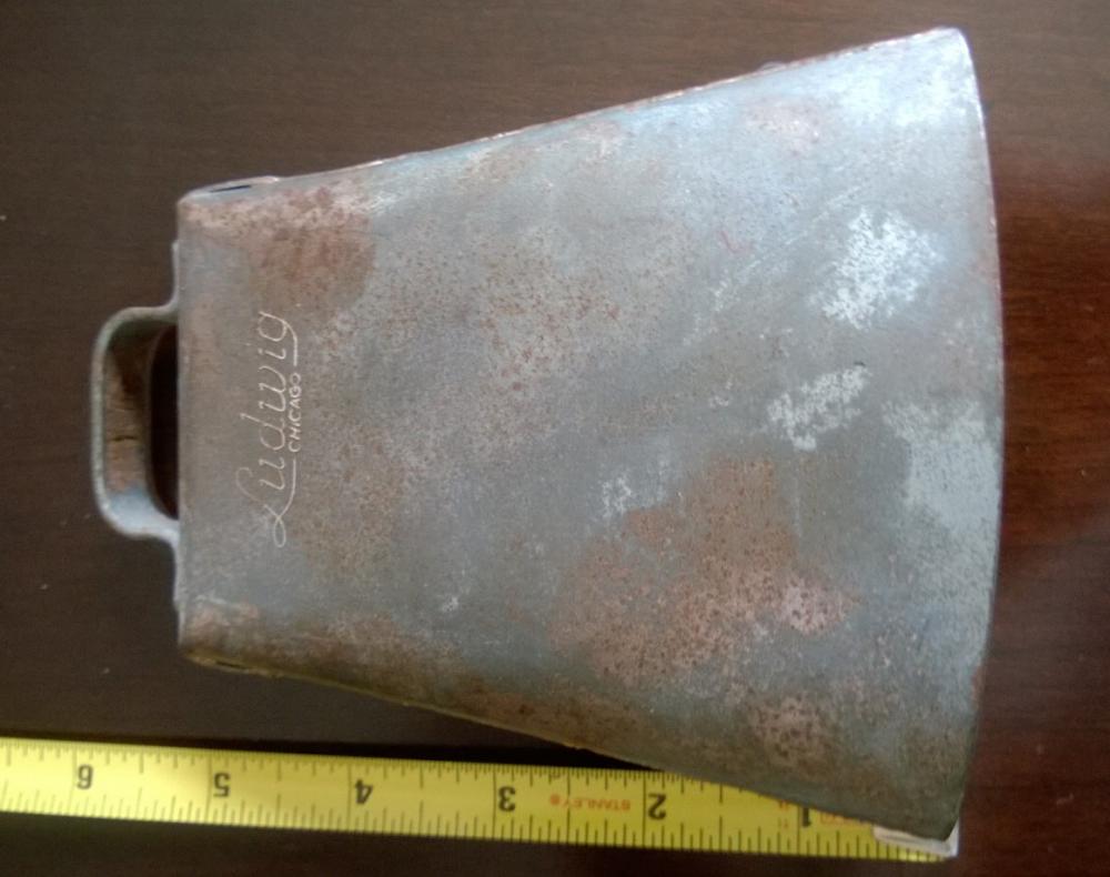 I have an old Ludwig Chicago steel cowbell for sale. Has the old Ludwig script logo on it. Pictures are self explanatory. No dents, cracks, or separations; finish shows age but that adds character!