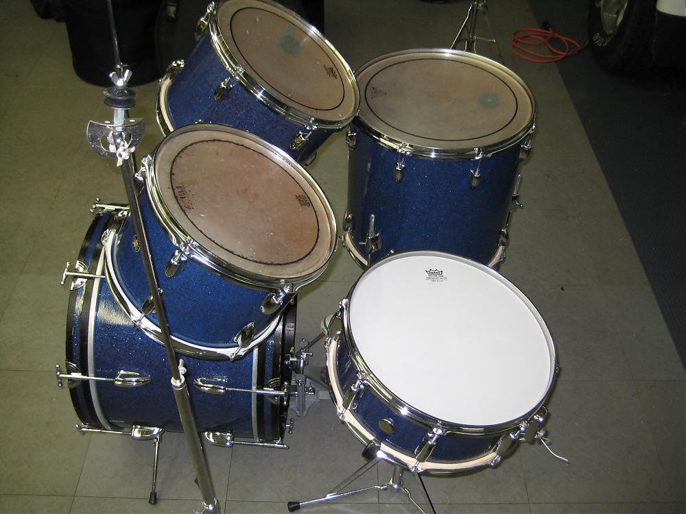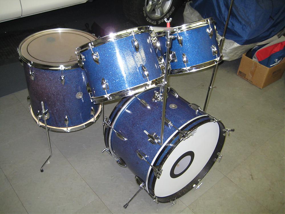 Some of you probably seen these before and after rehab, in the non-USA section. I decided to see if anyone here might be interested in them, as I am getting way to many drum kits around here and running out of space. They cleaned up very well and and actually sound pretty good. I removed all the hardware, cleaned and waxed the shells, polished all the hardware, and made sure everything is in prefect working order. The only problems I can see is that there is a slight discoloration on the Floor Tom wrap on one side and 2 minor nicks in the Bass Drum wrap, otherwise the wraps are all tight, and polished up nicely. The hardware also is quite nice and shined up well. The original heads are on the bottom of all the Toms and I even used the original front head on the batter side of the Bass Drum.