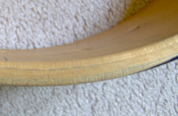 Those shells are making me waiver on whether or not these are Stone drums though. I've never seen a Stone shell with vertical plies like the bass drum. Most Stone models featured single ply shells with re-rings (pic #2 below). The exception is the Master-Model drums and the shallower separate tension drums after 1923 when they began building 5/8" thick three ply shells (pic #3 below). And it would be odd for Stone to turn out shells with no stampings, labels, or other marks at all.