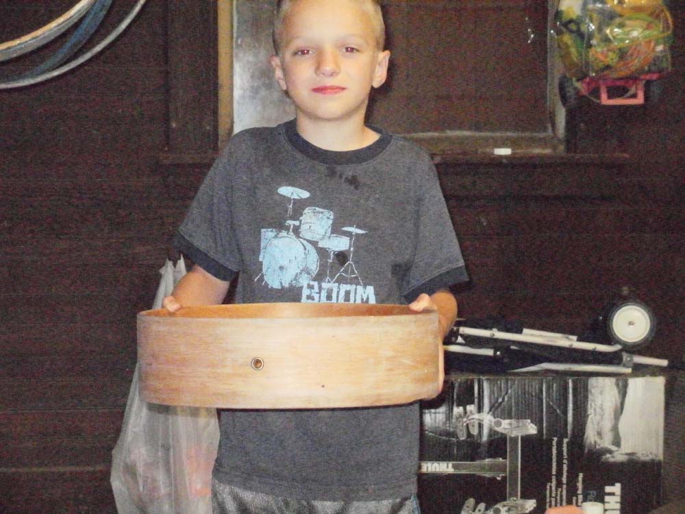 I finally got some time today so I started to strip the shells. I finished the snare shell and should have the bass and 4 hoops finished tomorrow. The hardware has had the paint stripped and is soaking in dawn to try and remove the rust.Here is a pic of my helper with the stripped shell. I'll post some more when I'm done stripping the rest.