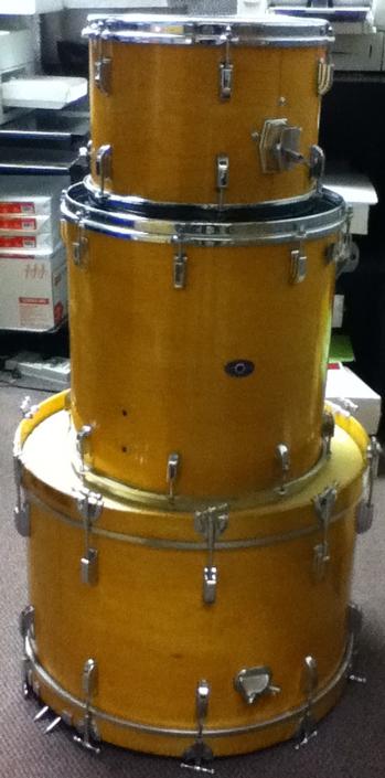 I've seen this kit and have been thinking about trying to snatch it...but can't justify the purchase (mostly to the wife and not to myself). It's an ok deal considering it's a shame about the missing parts/mods. The previous owner also drilled a Tama mount under the top hoop on the floor tom....must have used it as a floating floor tom. The tom mount (which I'm assuming is the Set-O-Matic-type) is also missing. I was thinking it would be a fantastic candidate for a re-wrap job.