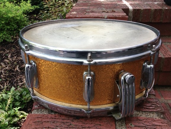 selling my gorgeous 1950's Slingerland Gene Krupa Super Radio King in gold sparkle