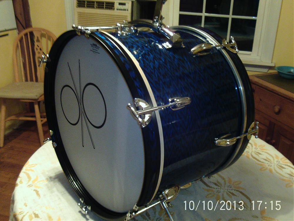 That bass drum looks pristine now. Great job! What a shine. I think it's kind of neat that the BD logo has a spot for your initials. I like that idea. Very retro-cool. Can't wait to see the rest. Good luck with the Kents too. Cool1