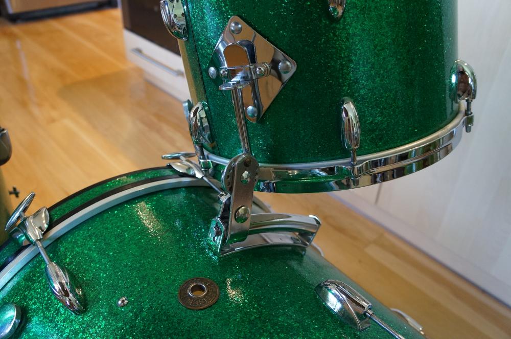 I was told by a Gretsch guy that the rods, lugs, rims, cymbal arm, mufflers, spurs and rail are original. The chrome is in excellent condition with some pretty minor pitting on some lugs and some spots on the rims but overall it is pretty solid. This kit was obviously well taken care of.